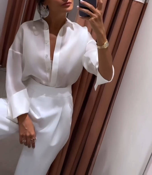 Solid Silk Lightweight Lapel Shirt Set