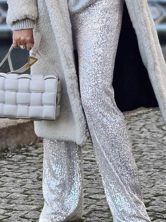 Solid Sequin Fashion Casual Straight Pants