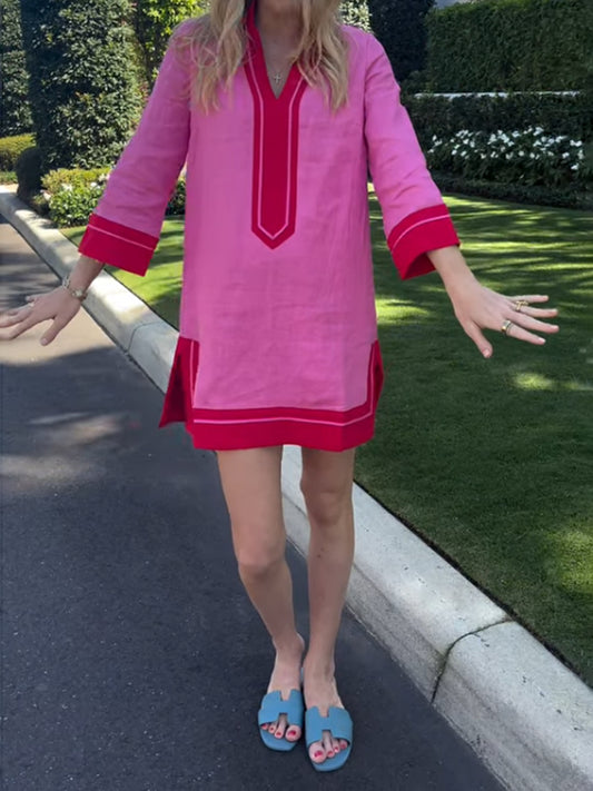 Stand Collar V Neck A-line Dress