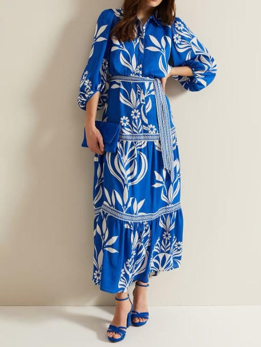 Summer Blue Floral Maxi Dress
