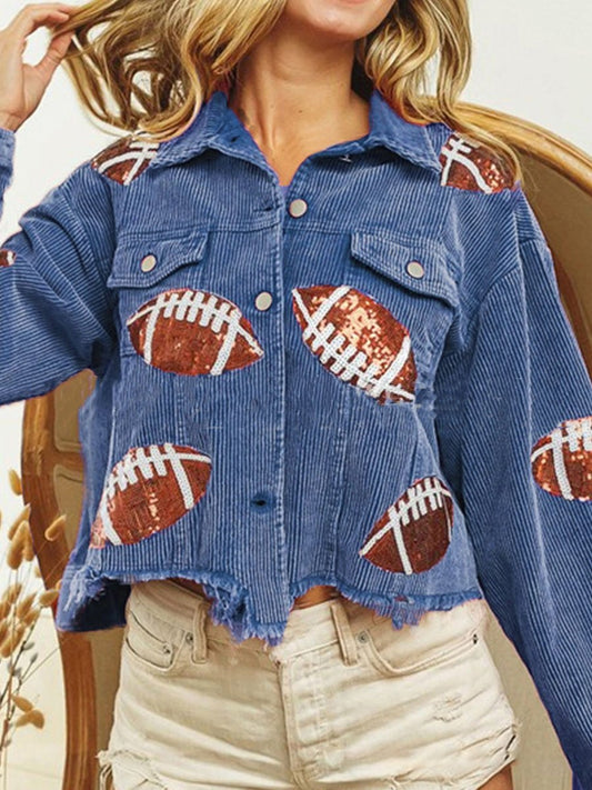 Corduroy Patchwork Sequins Jacket Baseball Coat