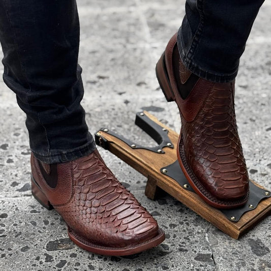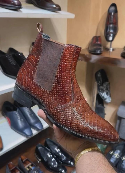 🔥Hot Sale🔥Artisanal Brown Python-Embossed Leather Men's Boots