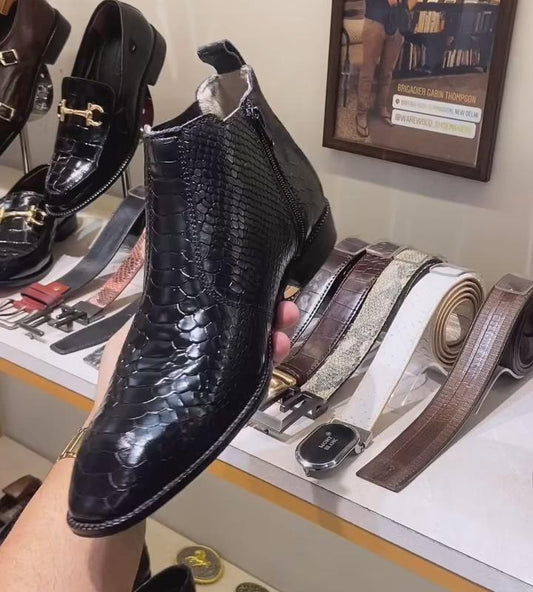 Python Leather Double-Zip Men's Boots