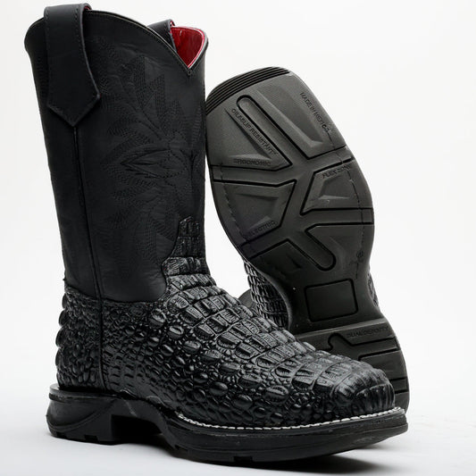 Black Caiman Hornback Leather Boots With 3D Lightweight Sole - Composite Toe