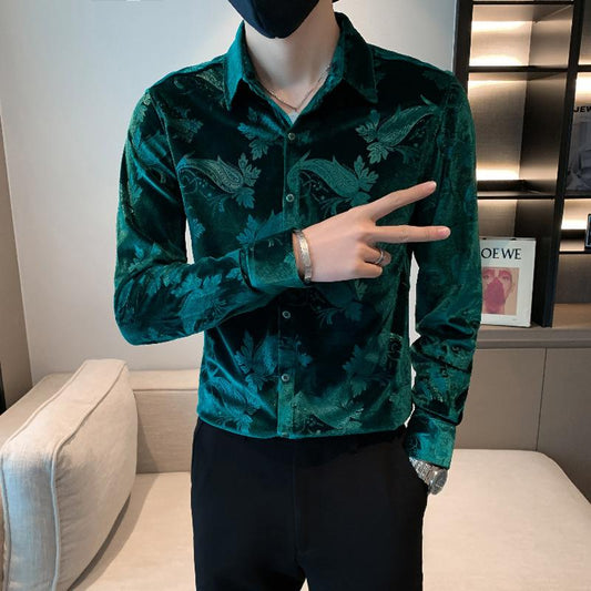 Shiny Velvet Long-sleeve Shirt