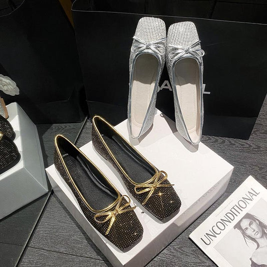 Bow Flat Rhinestone Pumps