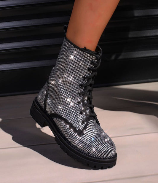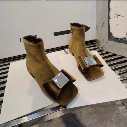 2023 New Thick Heel Slim Patent Leather Martin Boots