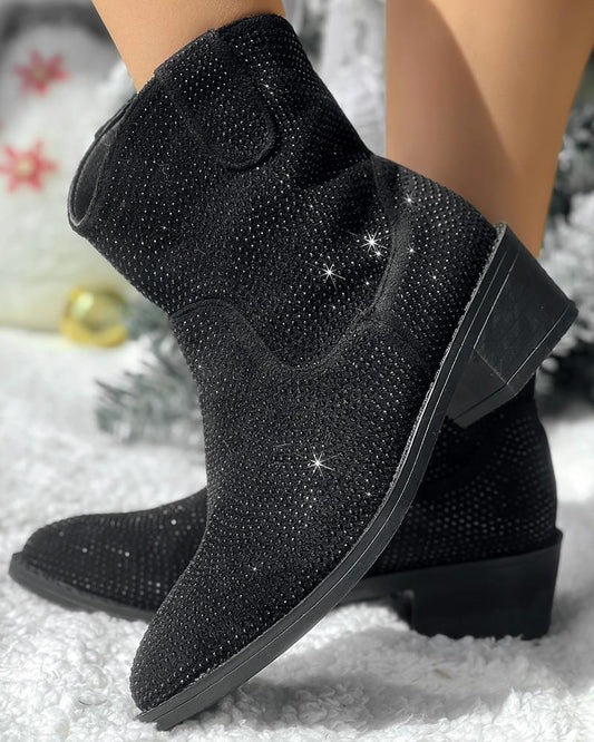 Pointed Rhinestone Sparkling Pleated Mid-length Trendy Style